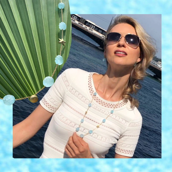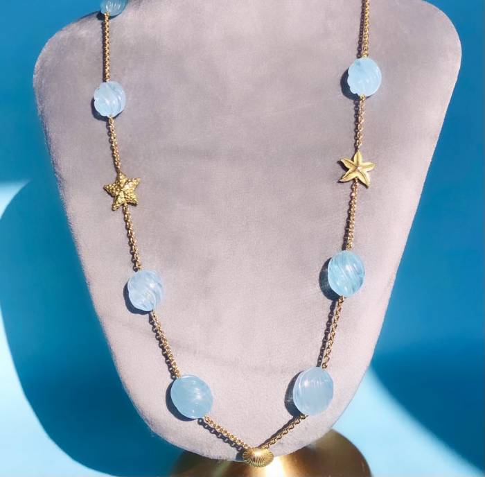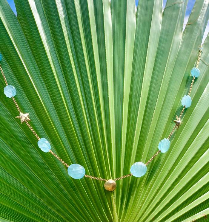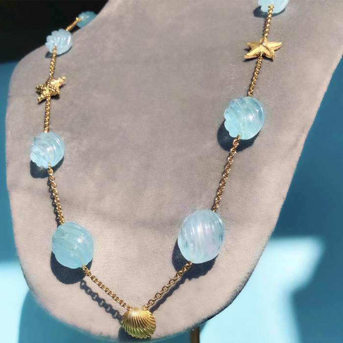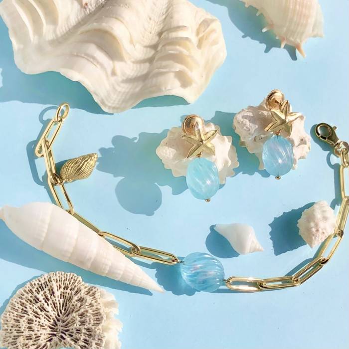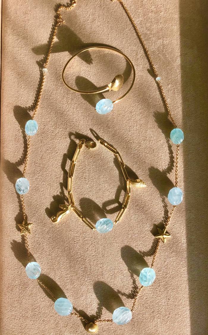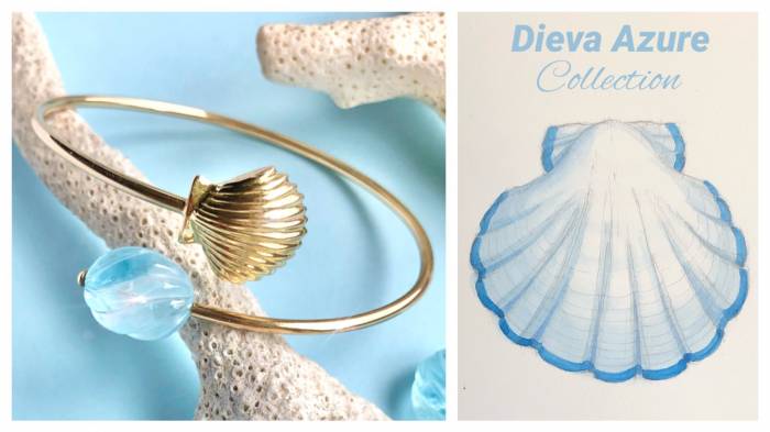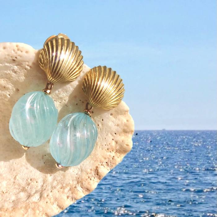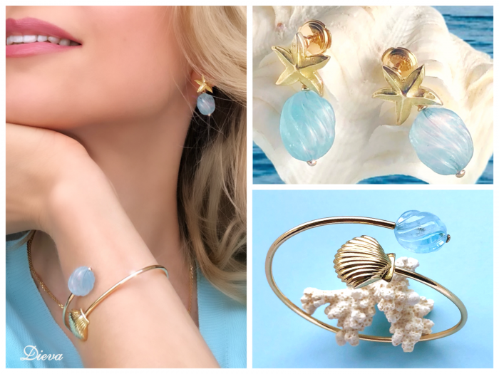 Seashell bracelet in yellow gold 18 k and hand carved Sky Blue Topaz