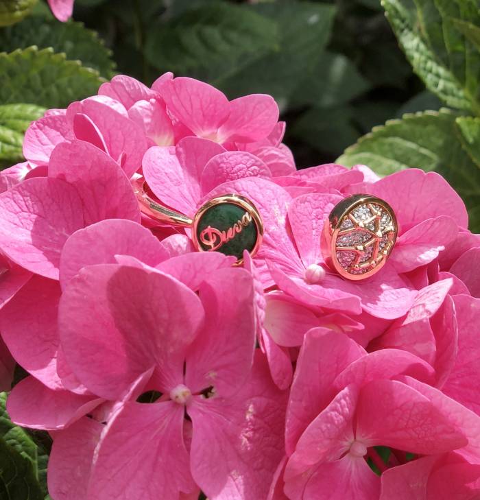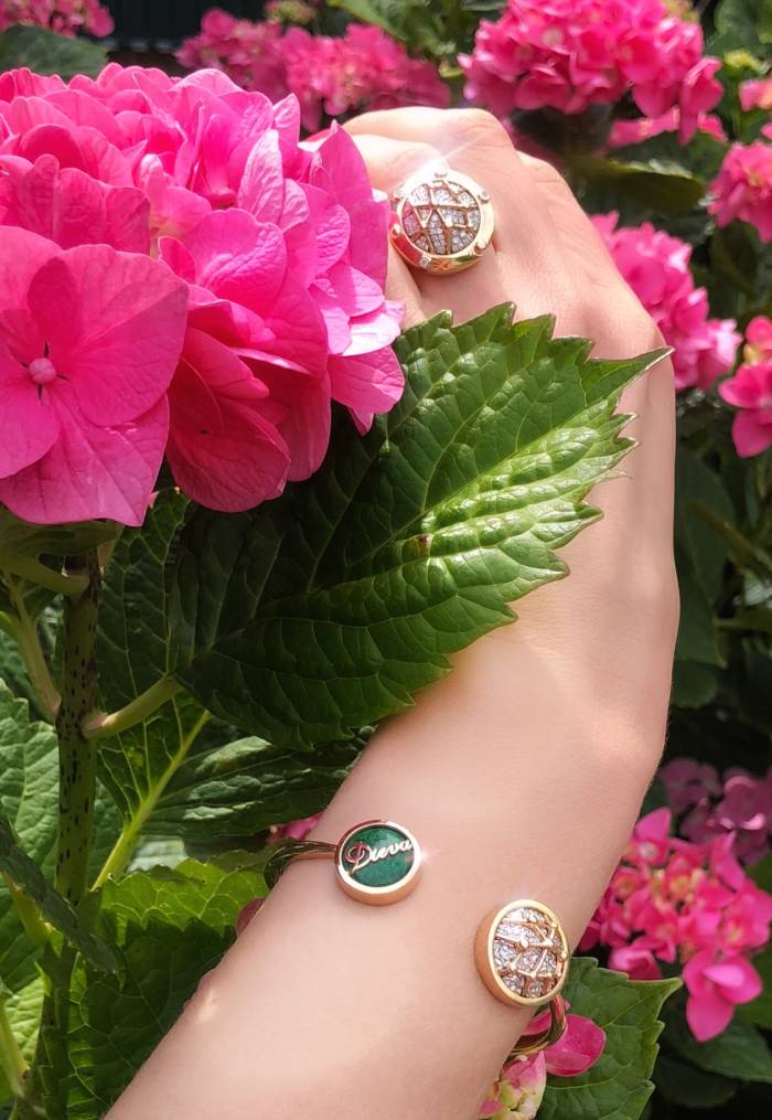 This radiant Dieva Flower Collection features rings crafted from precious gold and adorned with natural gemstones, meticulously hand-carved by skilled artisans into delicate flower shapes. Discover the vibrant beauty of malachite, lapis lazuli, amethyst, and pink opal, each stone bringing a unique energy and charm. With limitless possibilities, you can create your own piece by selecting between 18k or 9k gold and your favourite gemstone, making every ring or earring as unique as you are.