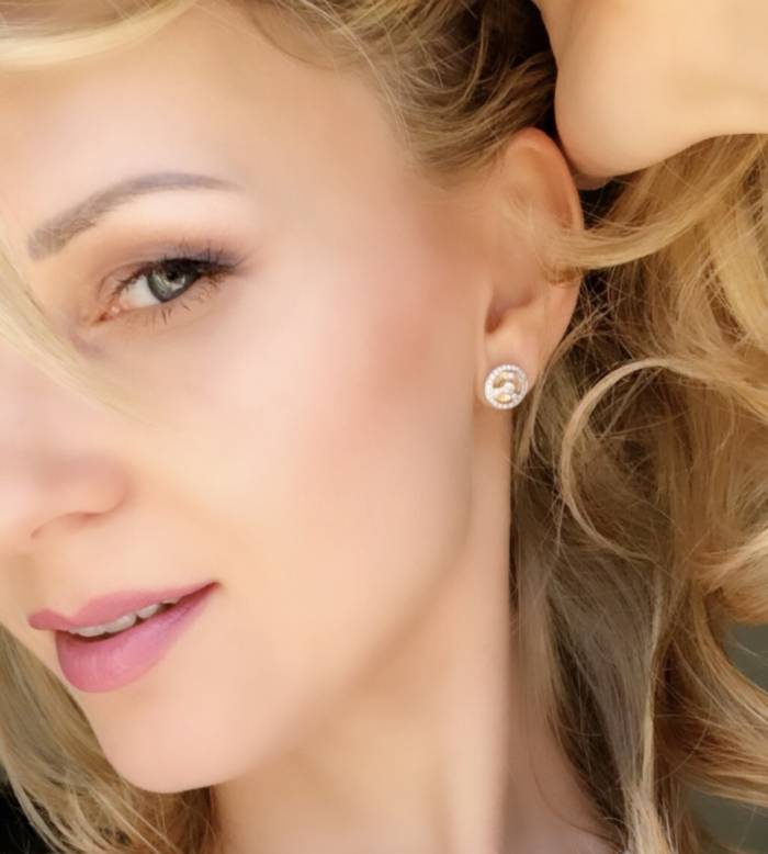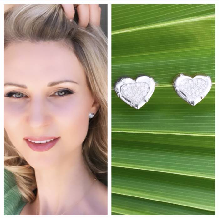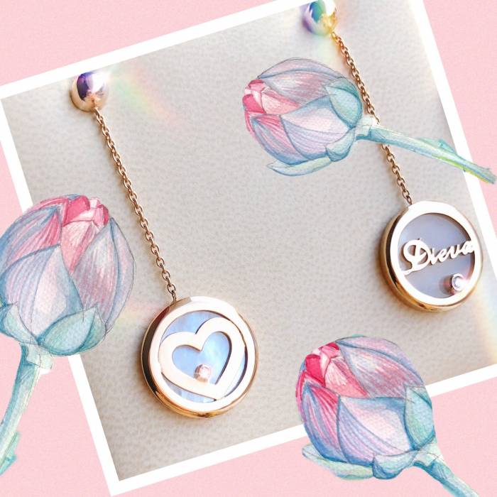 Earrings in rose gold 18 K with mother-of-pearl and white diamonds G-VS. A real symbol of Love