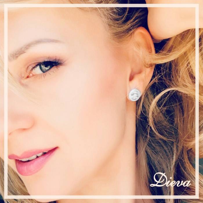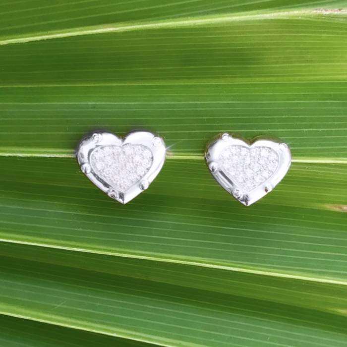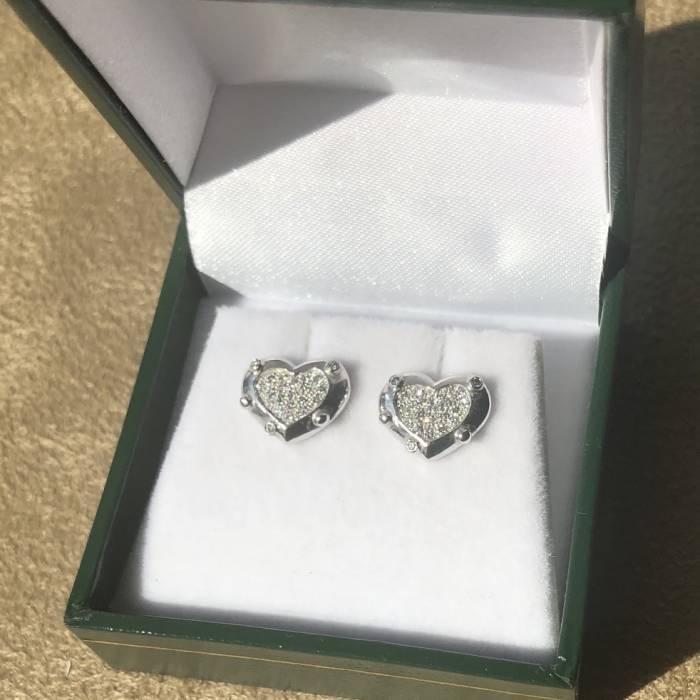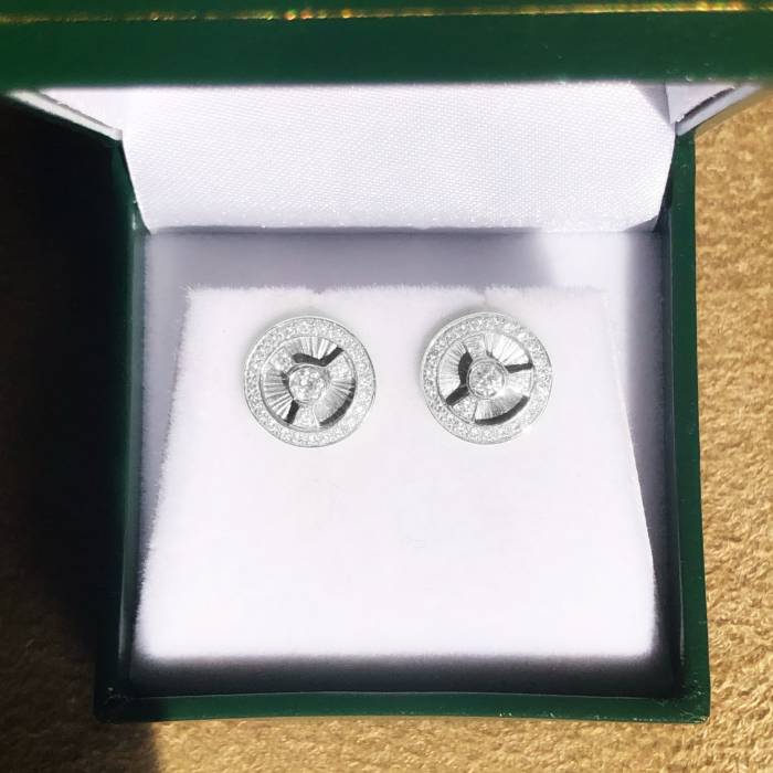 White gold 18 k stud earrings set with 56 sparkling, round-cut natural diamonds G-VS