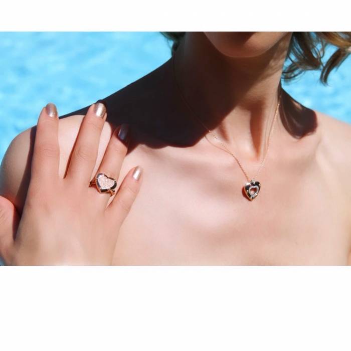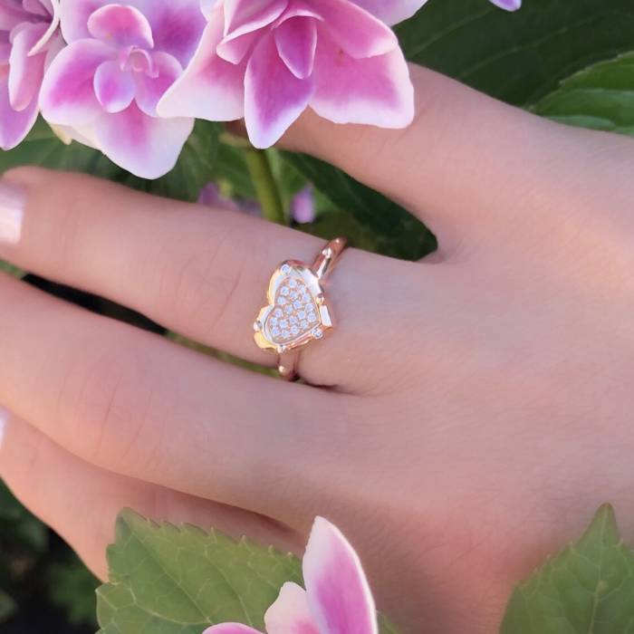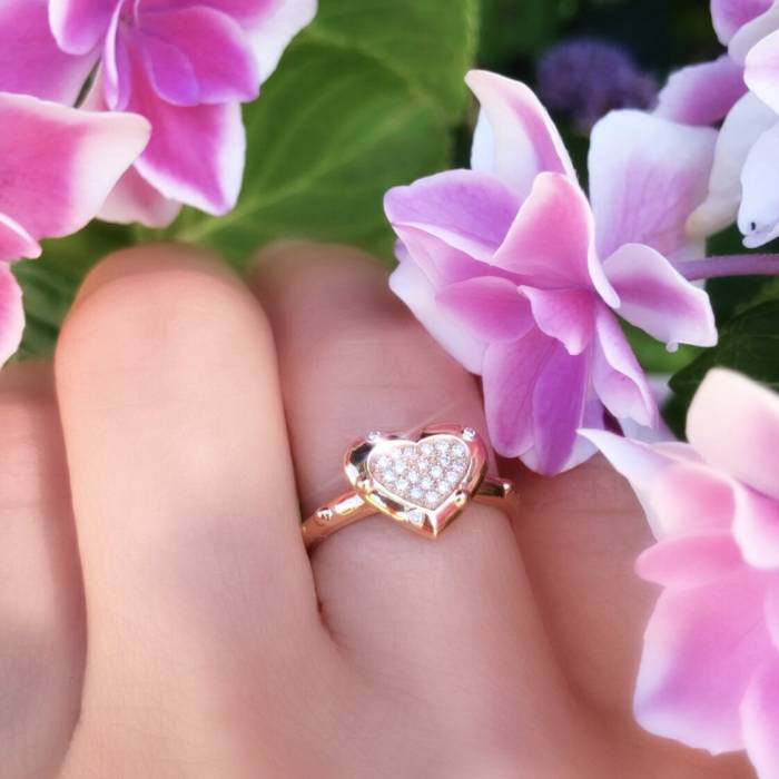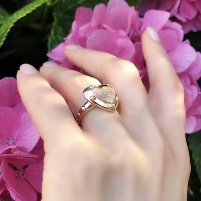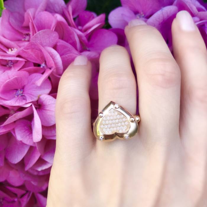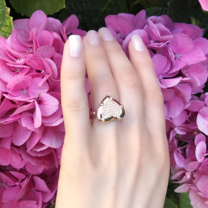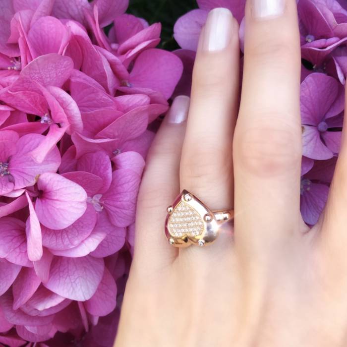 This precious heart shaped ring made in rose gold 18k and set with 39 natural white diamonds is a real statement of Love!