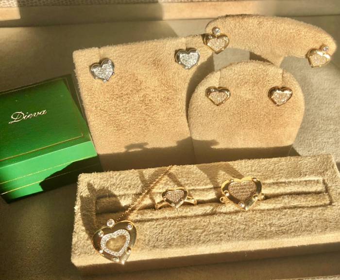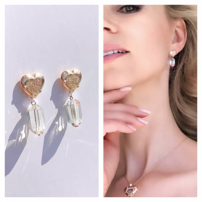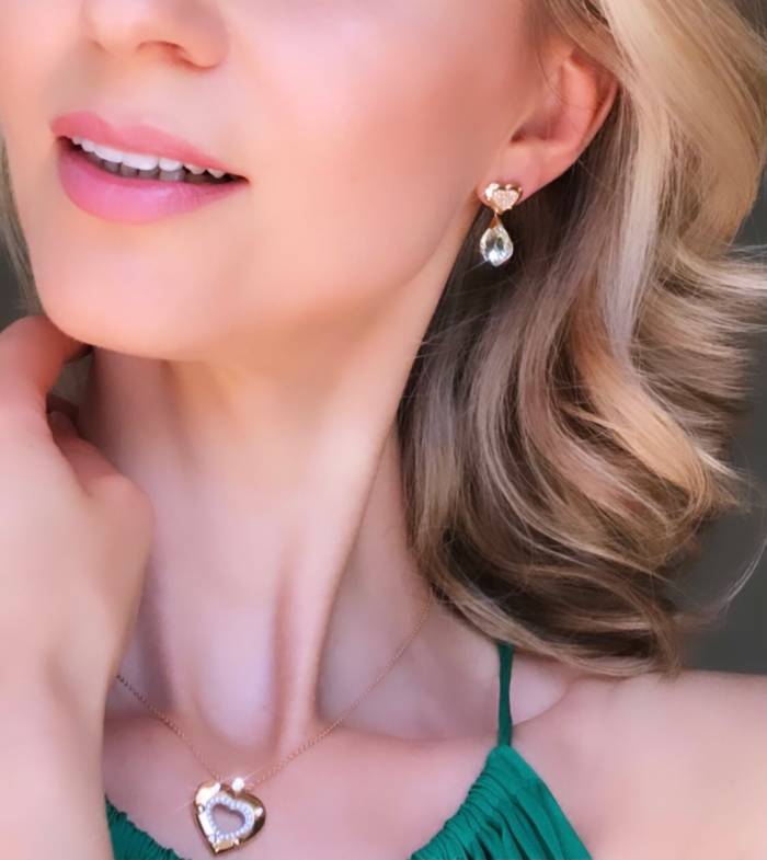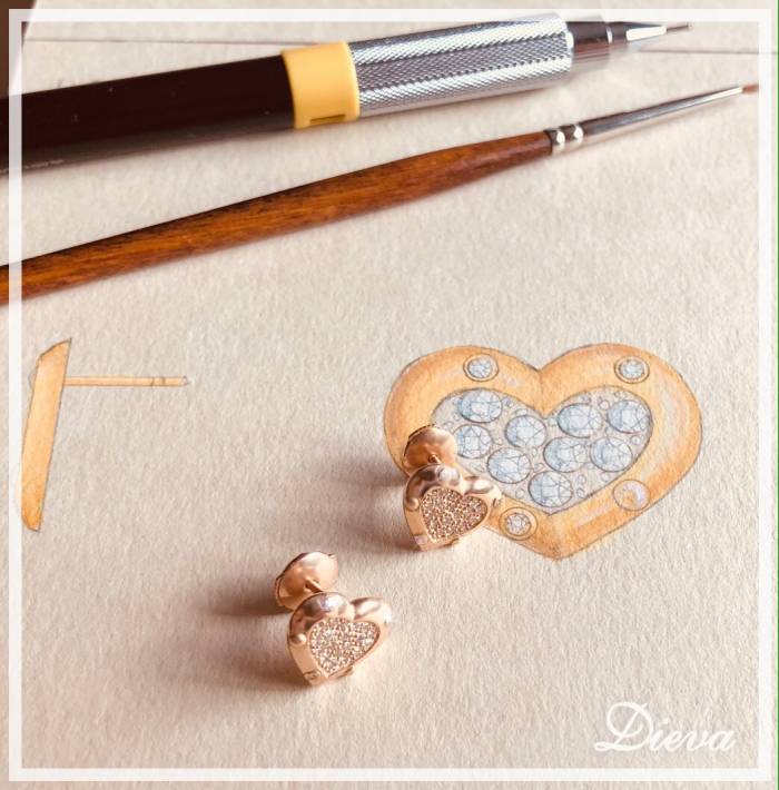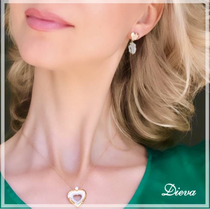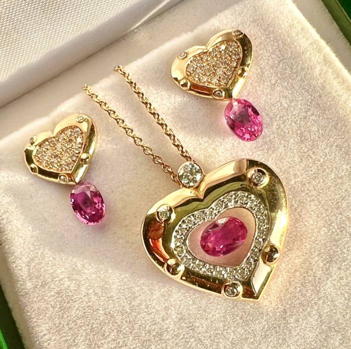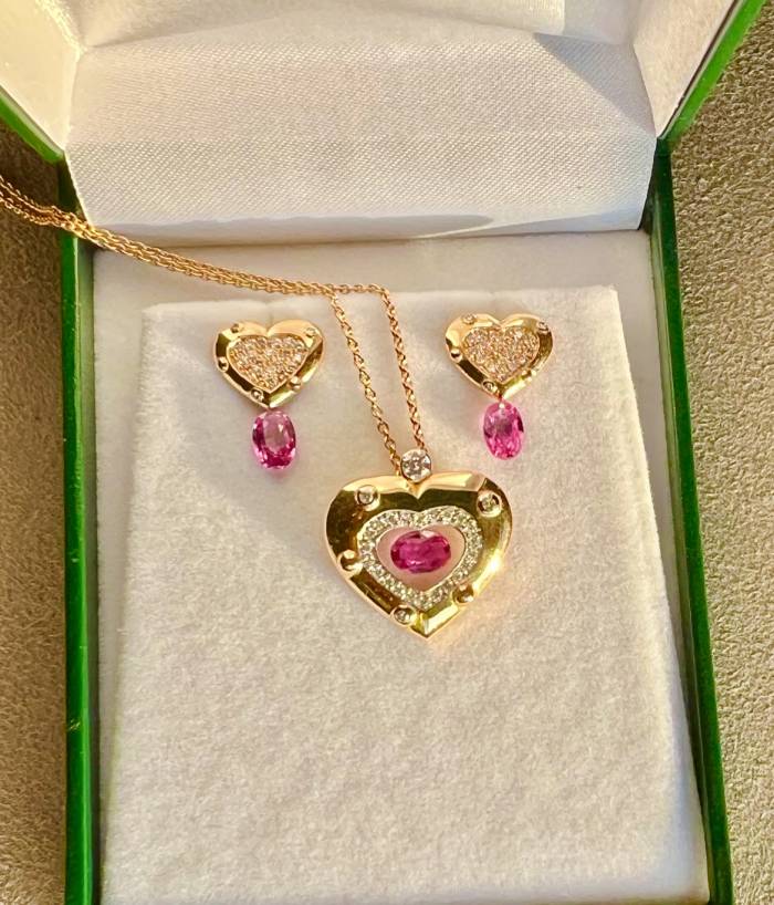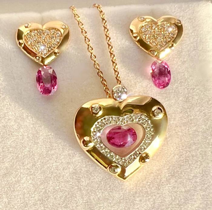 Dieva Heart Earrings and pendant, rose gold 18k & Pink Sapphires
