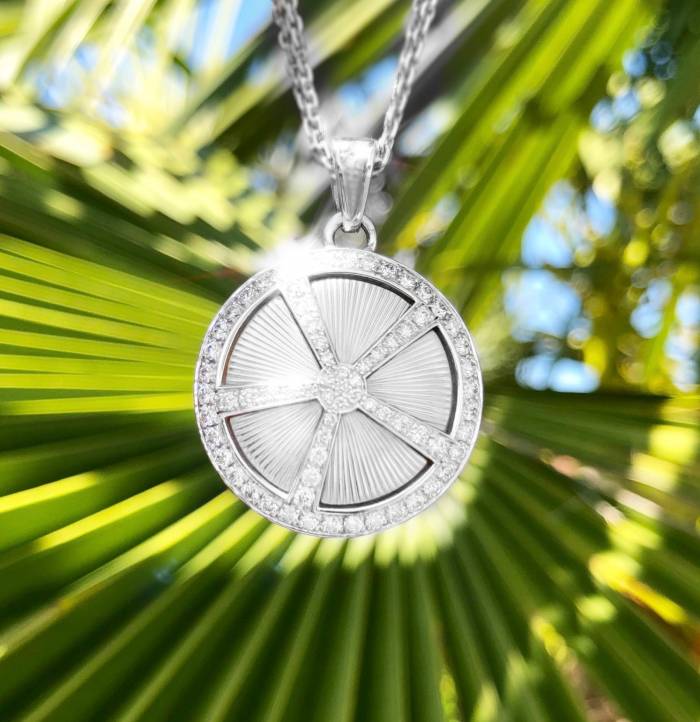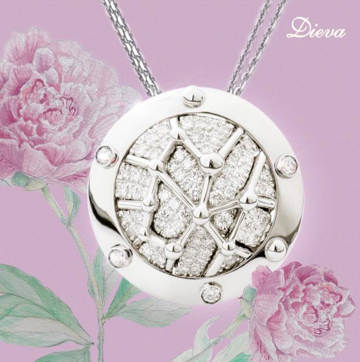 Significant, finely worked Pendant with over 80 brilliant-cut white diamonds G-VS totaling 1 Cts set in white gold 18 K