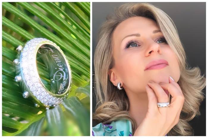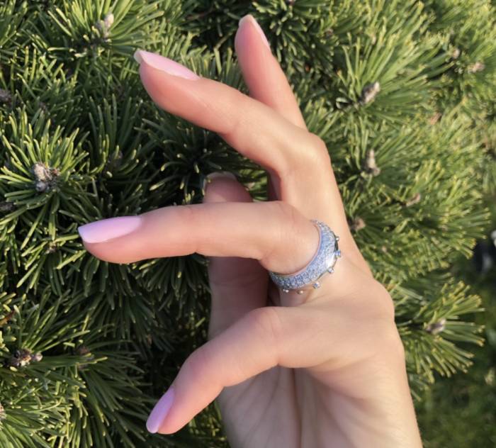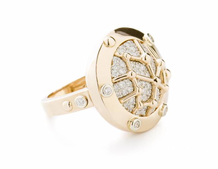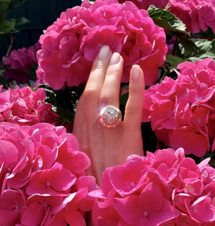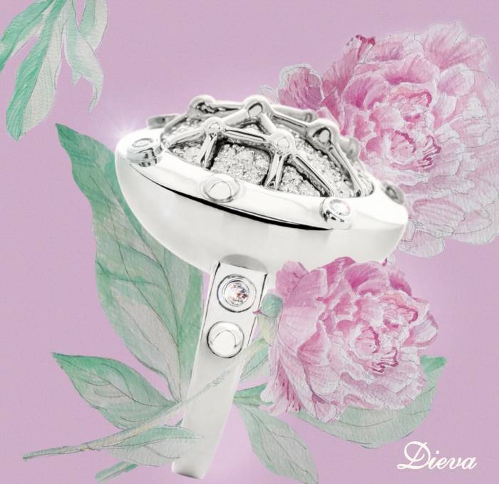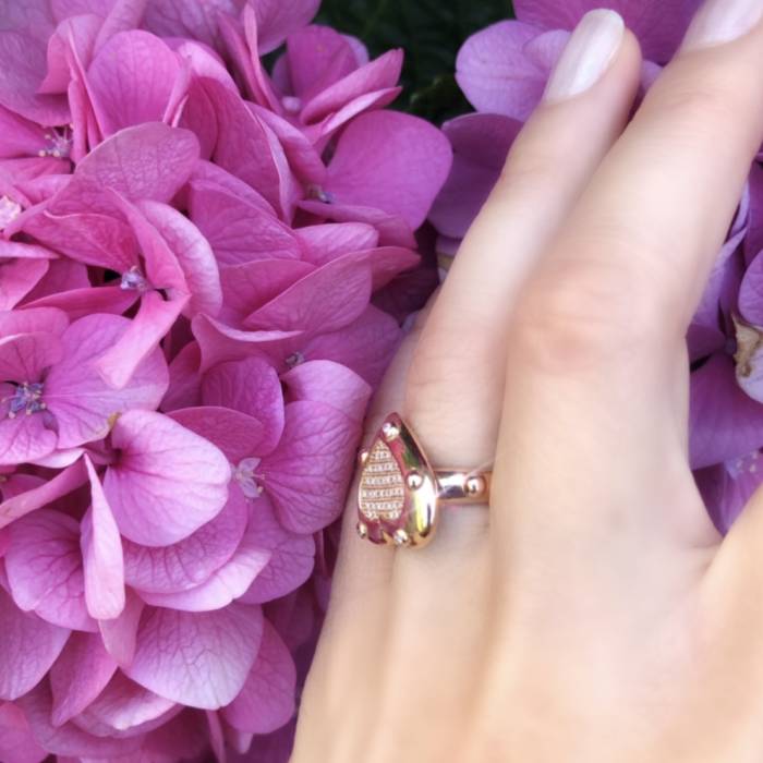 Outstanding Dieva Diamond Ring: 18 K rose gold settled with 75 white diamonds D-VVS
