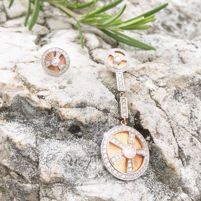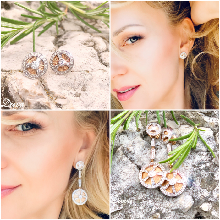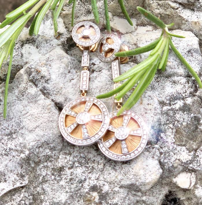 Refined & precious detachable Earrings with over 182 brilliant-cut white diamonds G-VS totaling 1,5 Cts set in rose and white gold 18 K
