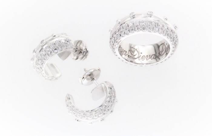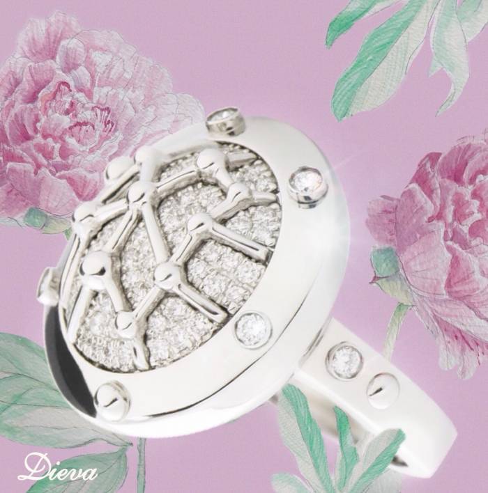 Outstanding Dieva Diamond Ring: 18 K white gold settled with 75 high quality white diamonds D-VVS