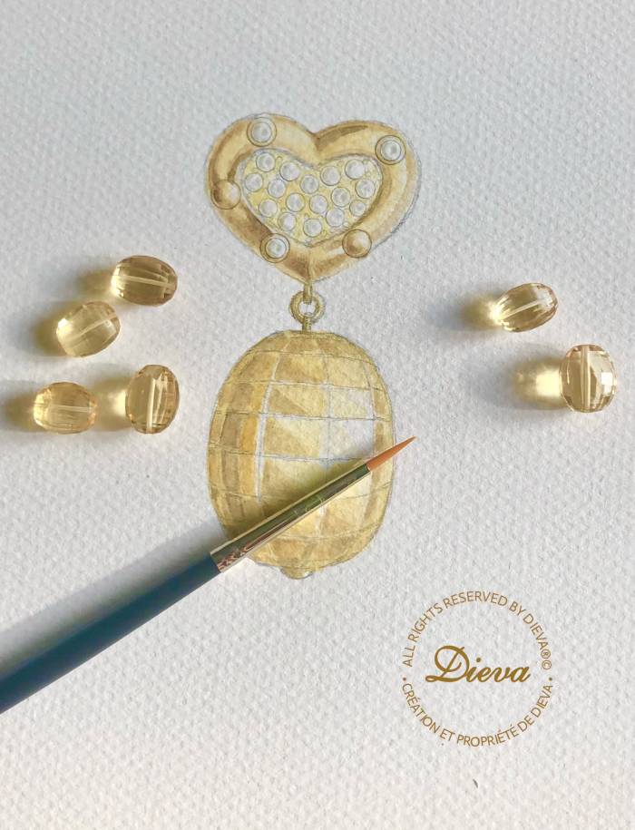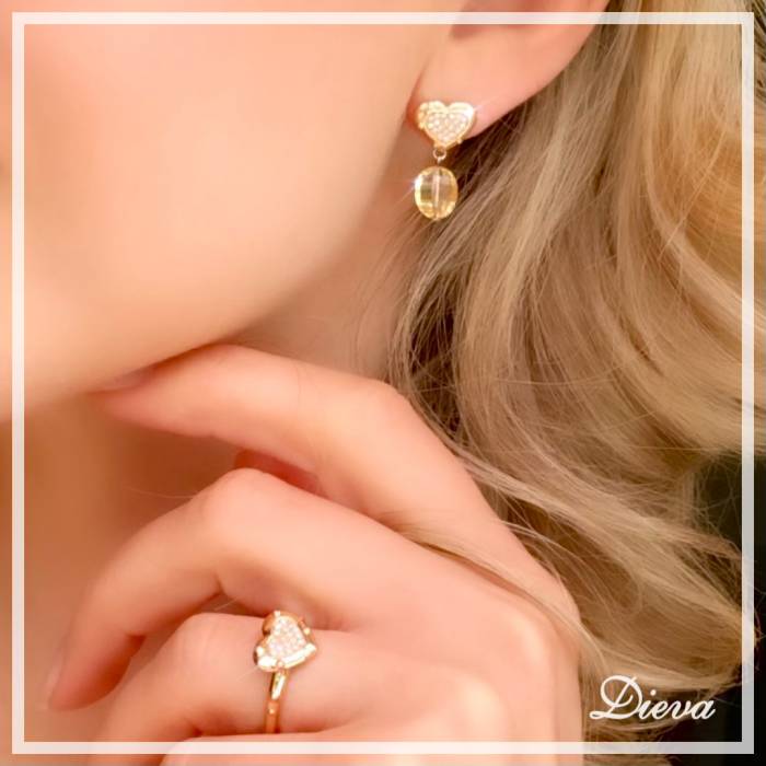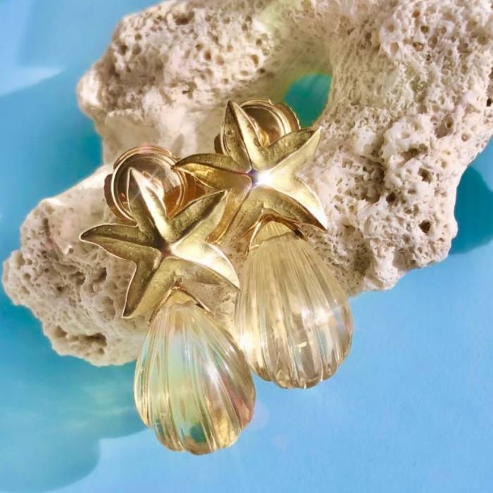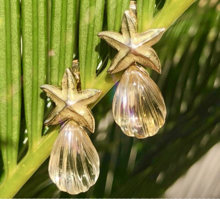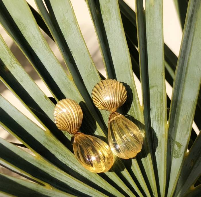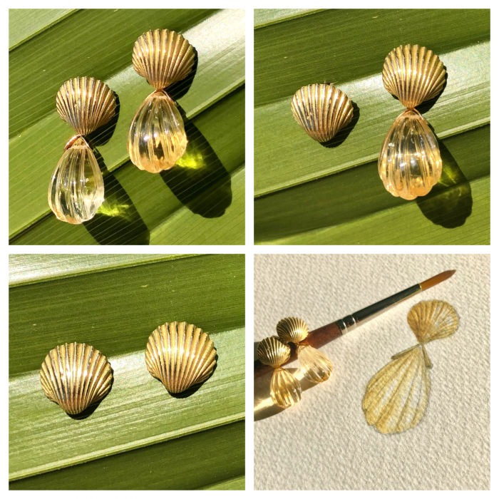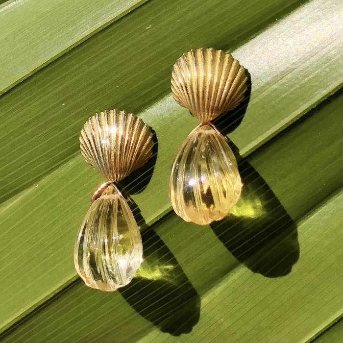 Earrings in precious yellow gold 18k and detachable hand carved Citrine drops