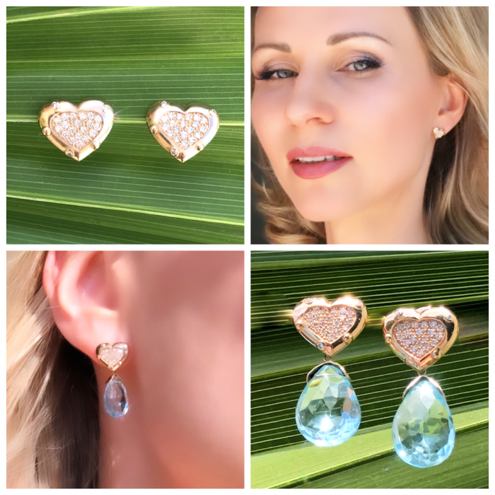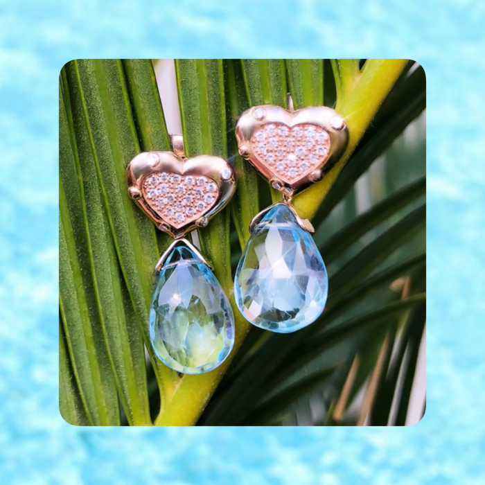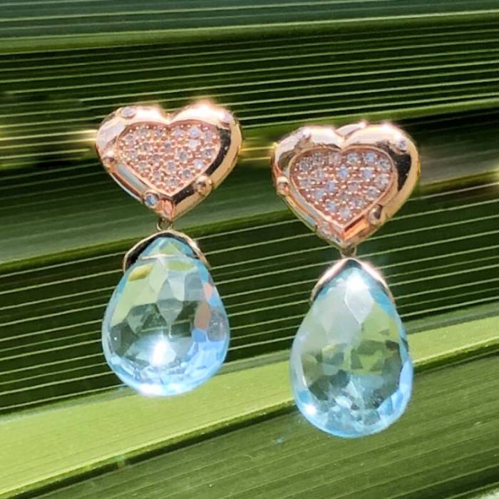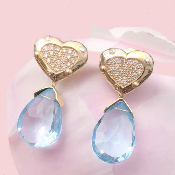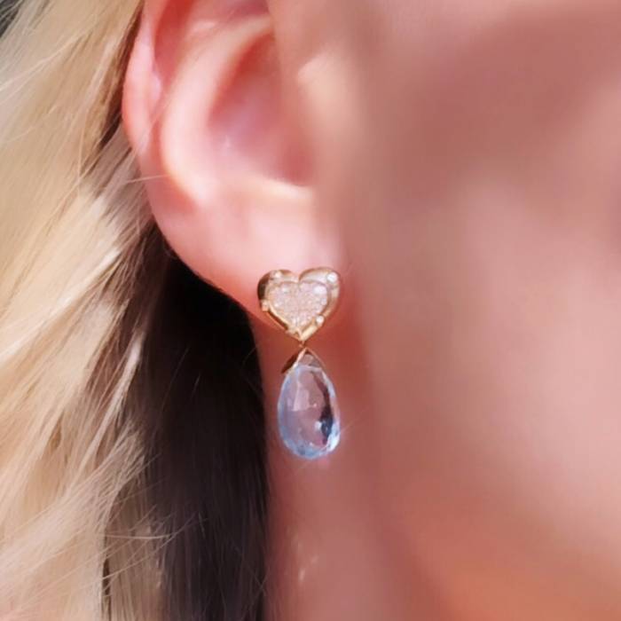 Detachable earrings in rose gold 18k, natural diamonds and natural heated blue topaz