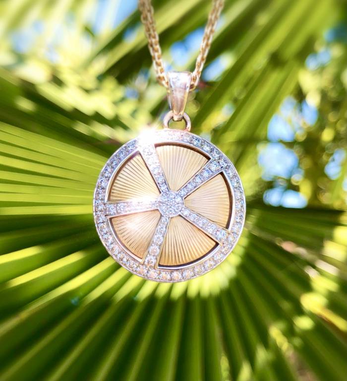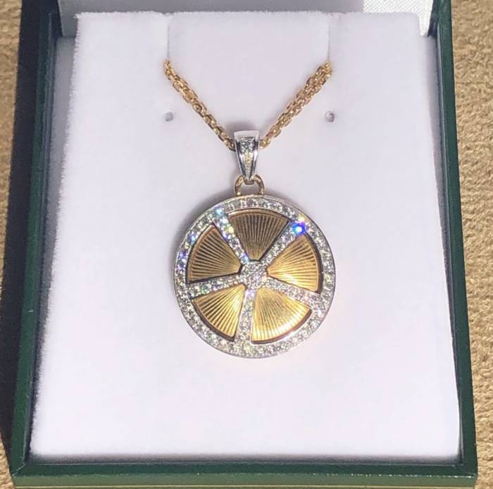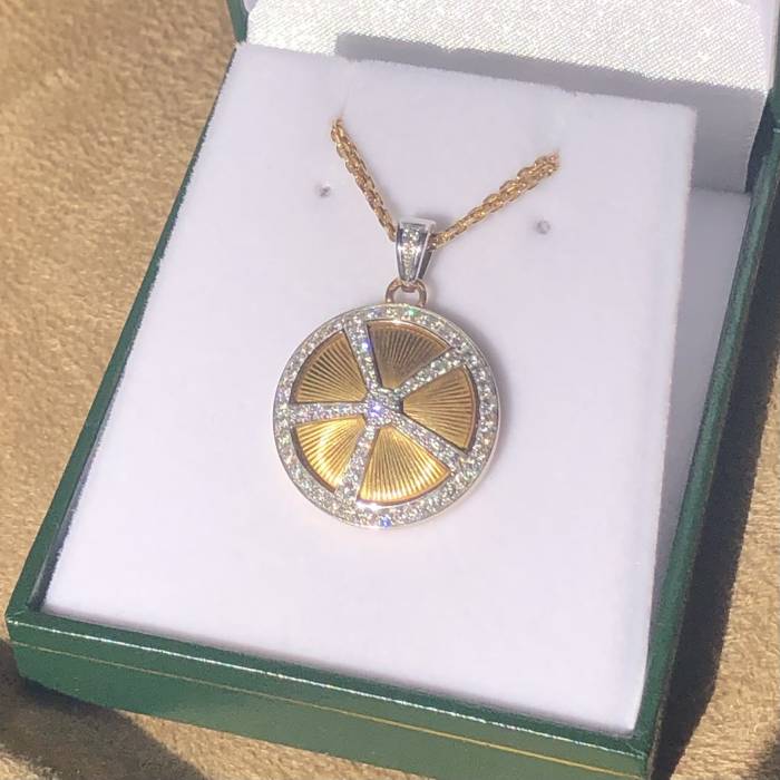 Finely worked Pendant with over 80 brilliant-cut white diamonds G-VS totaling 1 Cts set in rose and white gold 18 K