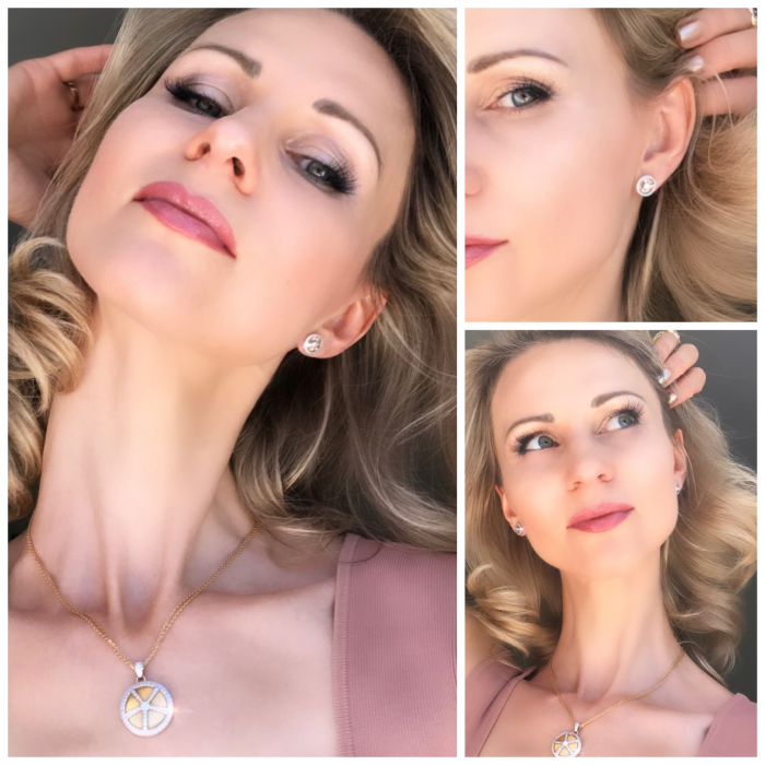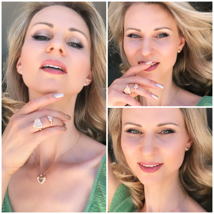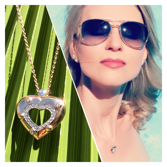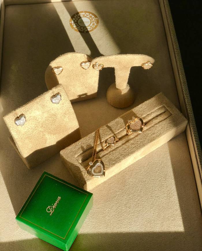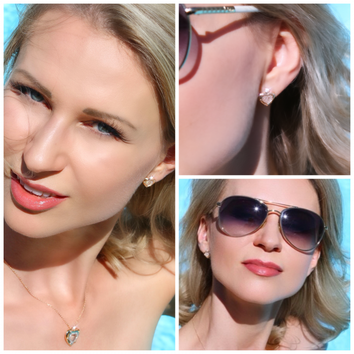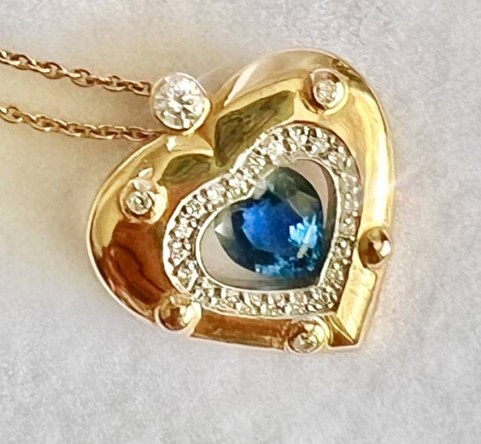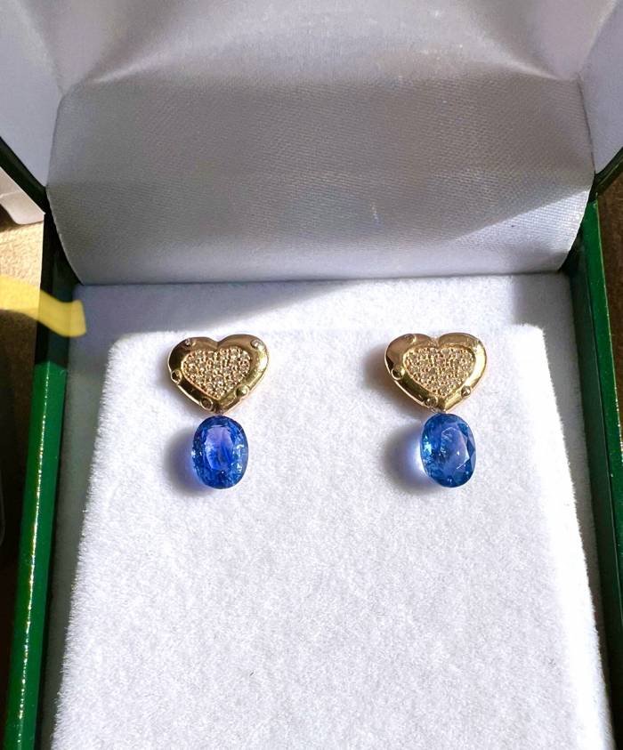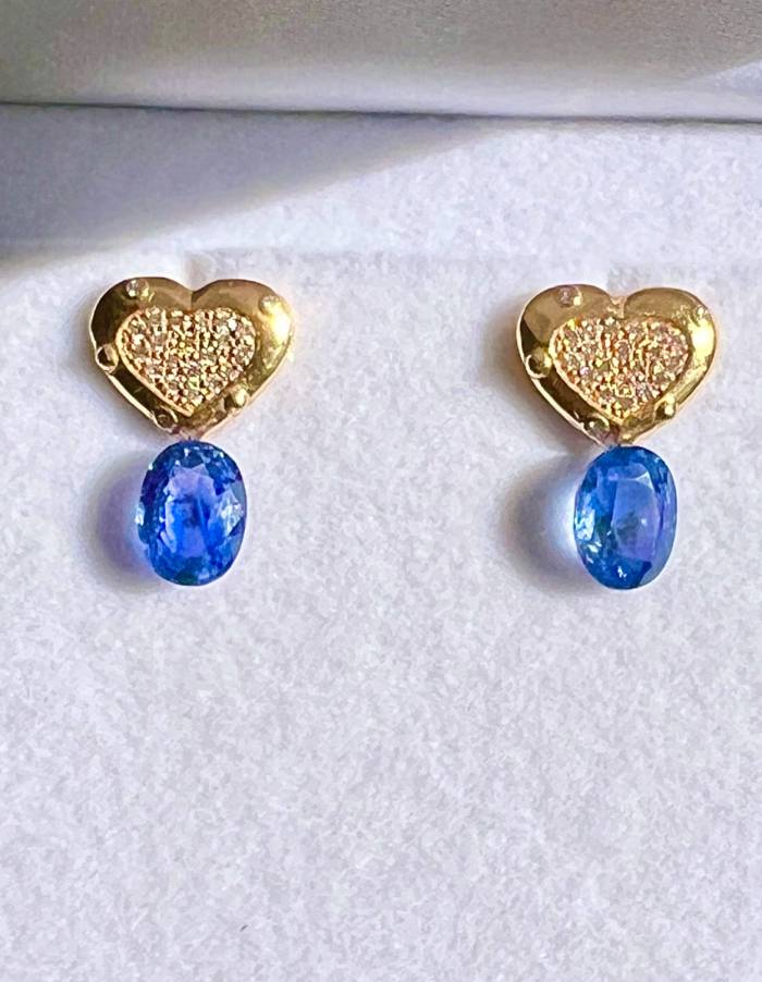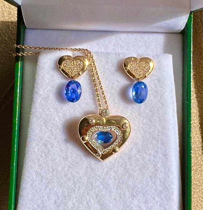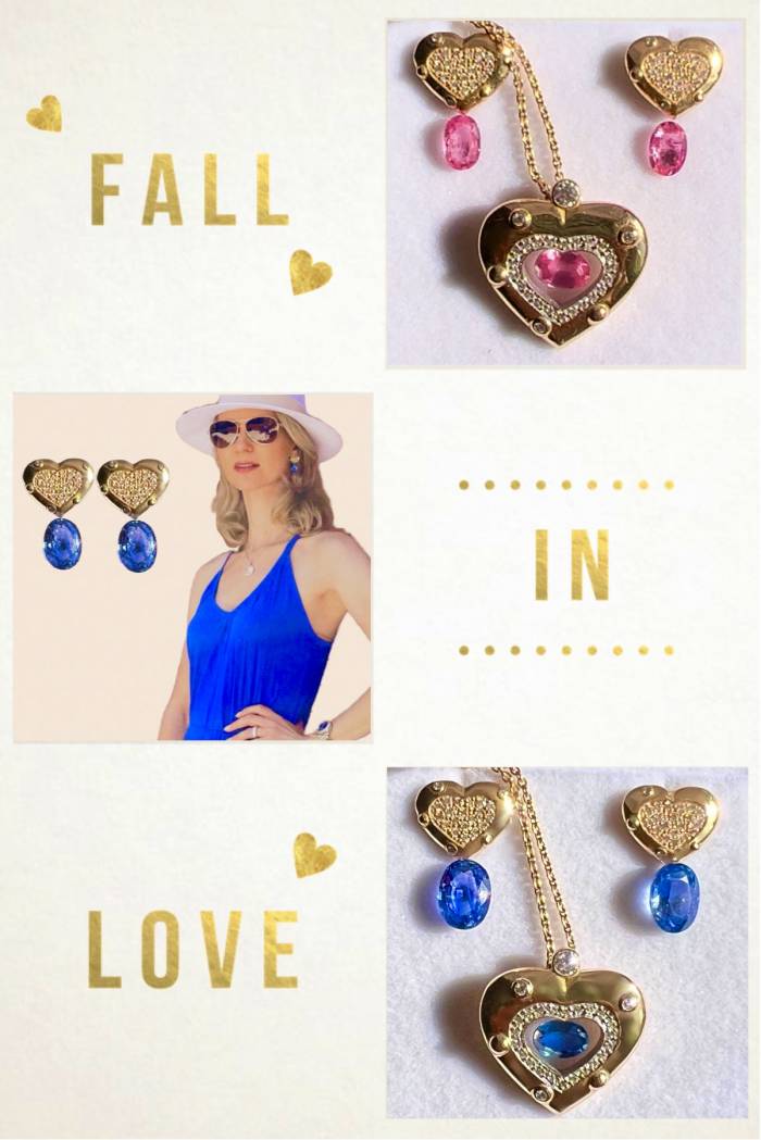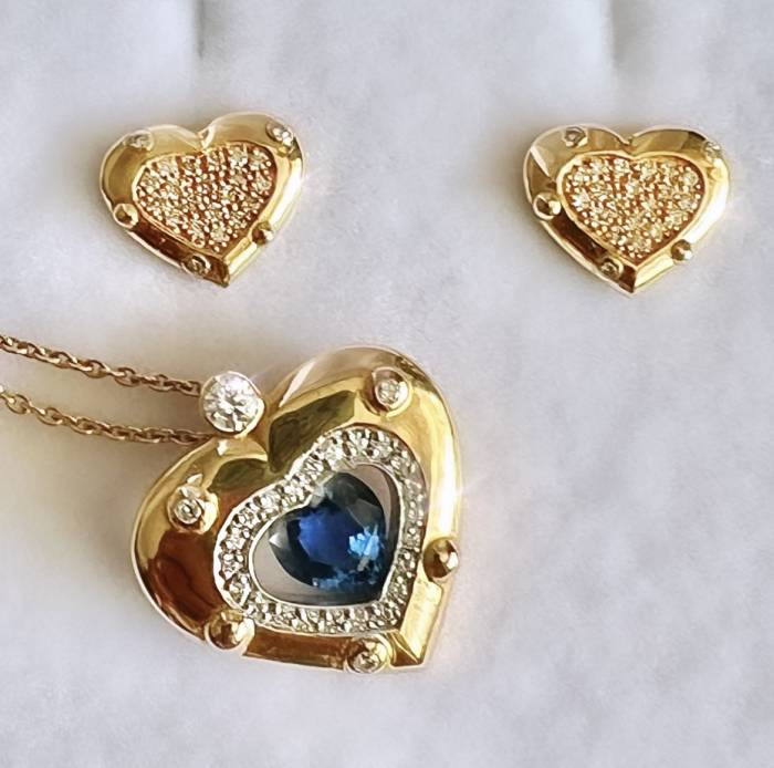 Dieva Hear earrings and pendant, rose gold 18k, natural diamonds & Blue Sapphires