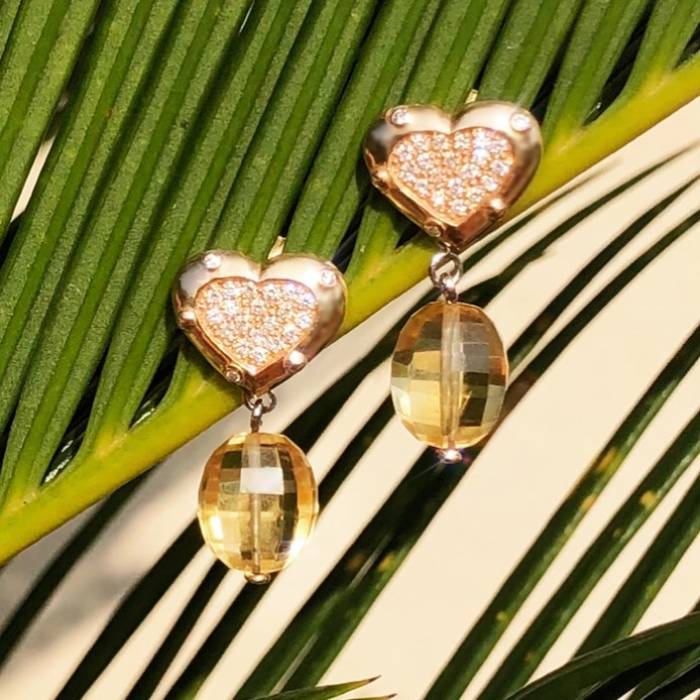 Tailored rose gold 18 k earrings with diamonds and Citrine detachable drops. You can wear them as stud earrings or as drop earrings