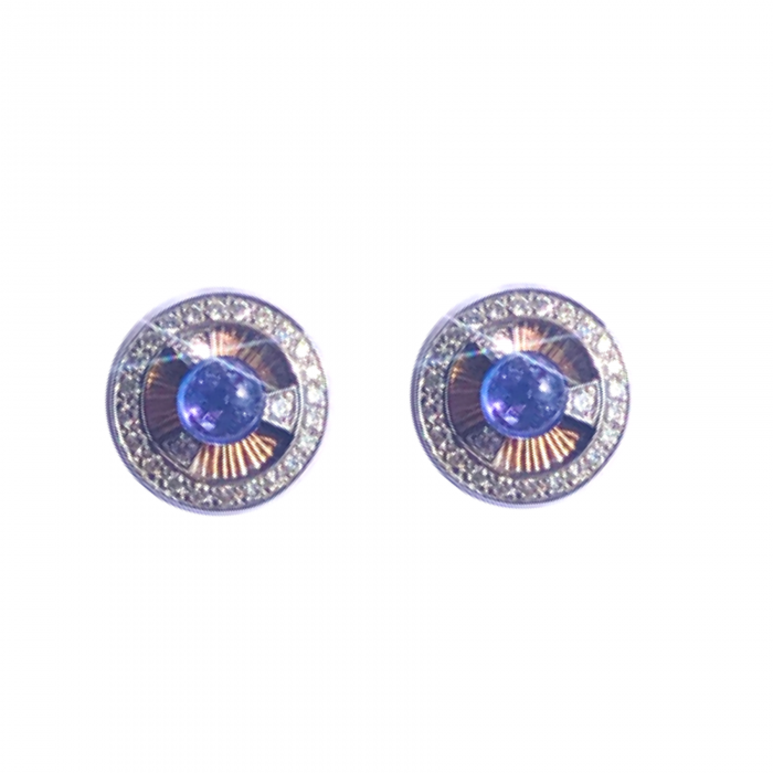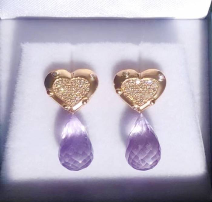 earrings in rose gold 18k, set with natural diamonds and with detachable hand carved natural lavender amethyst