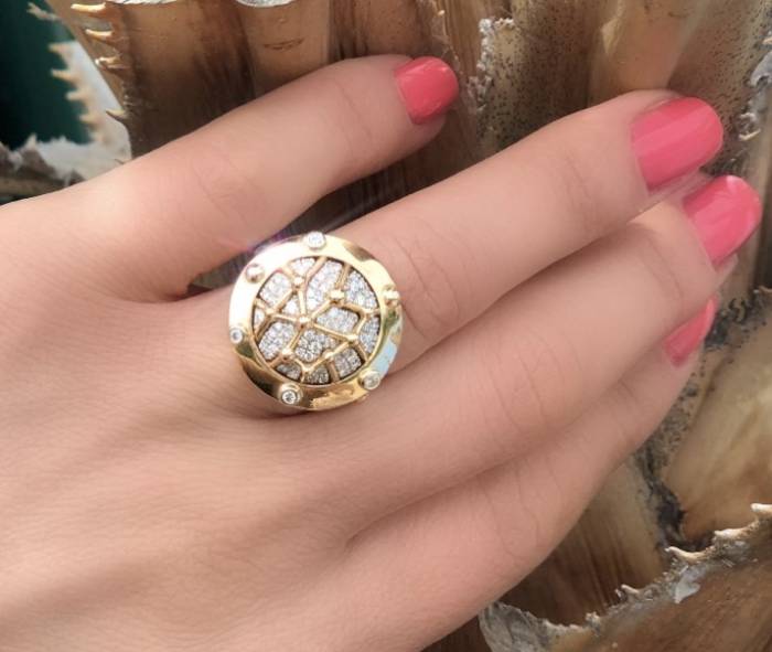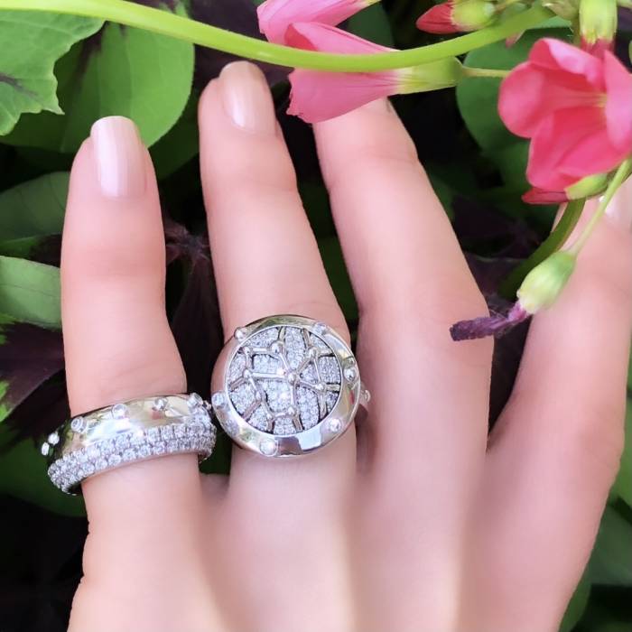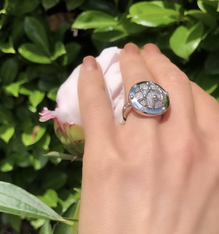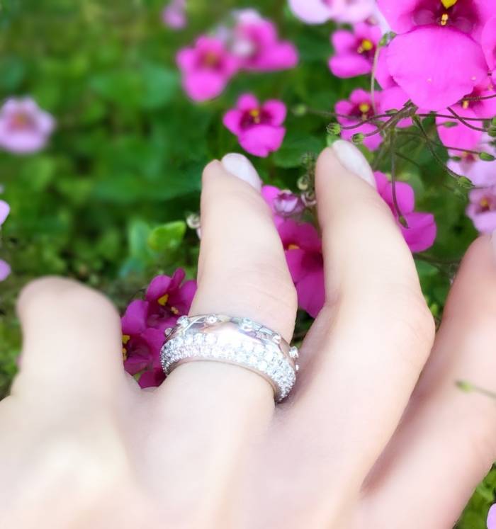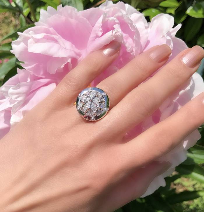 Ring with over 77 brilliant-cut white diamonds totaling 1,3 Cts set in white gold 18 K