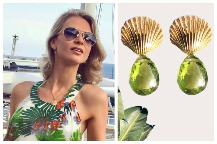 Earrings in precious yellow gold 18k and detachable hand carved drops of natural Peridot gemstone