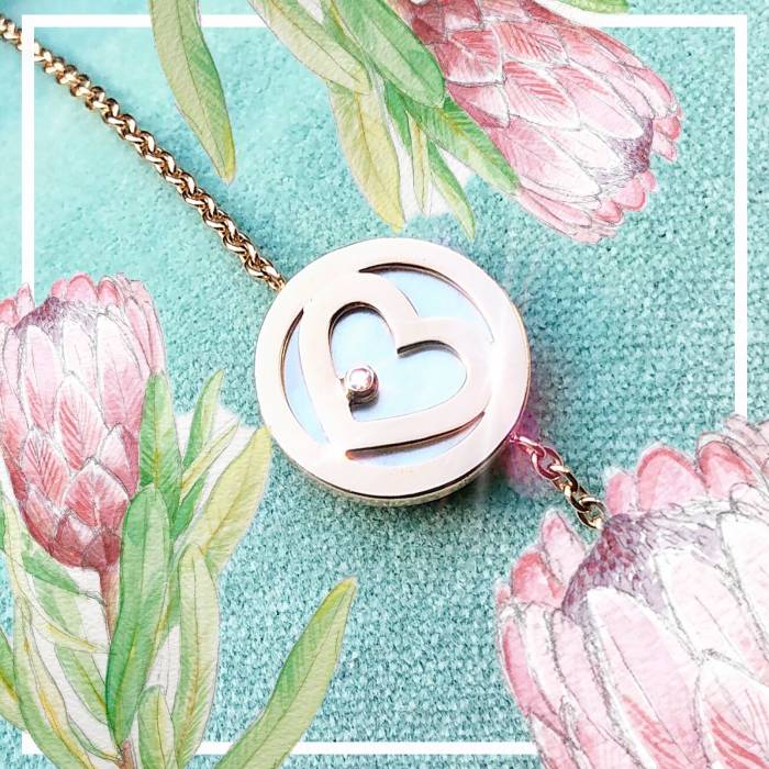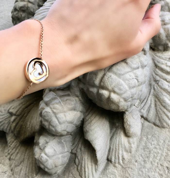 Choose your side, play with it, turn it upside down, enjoy with joyful tailored Reversible Dieva Bracelet from “Dieva Love” collection. Double-faced Bracelet in rose gold 18 K with mother-of-pearl and white diamonds G-VS. A real symbol of LOVE.