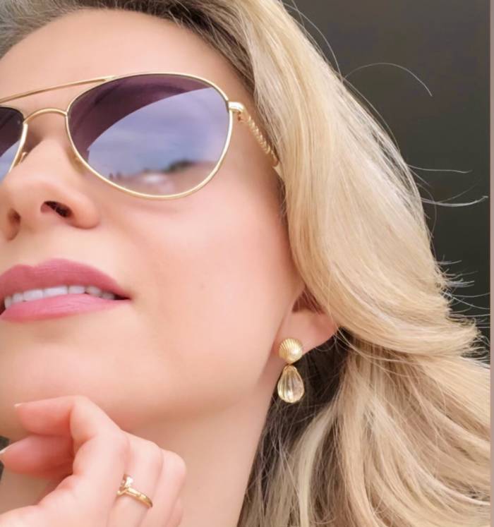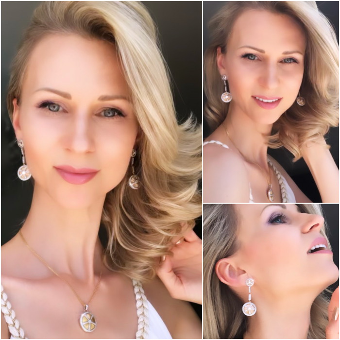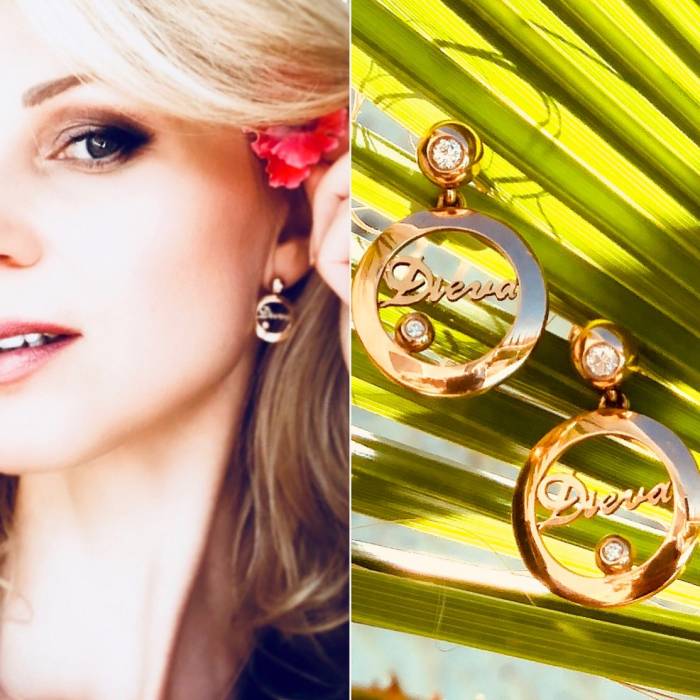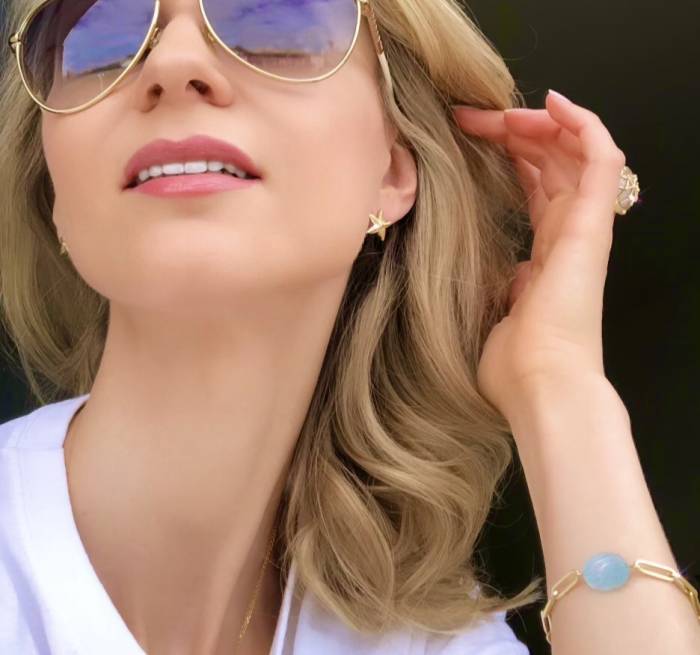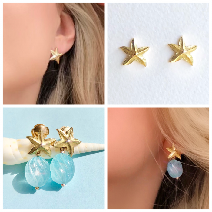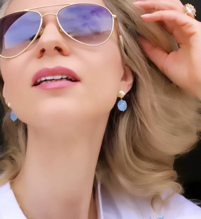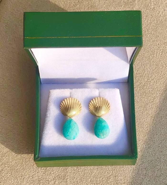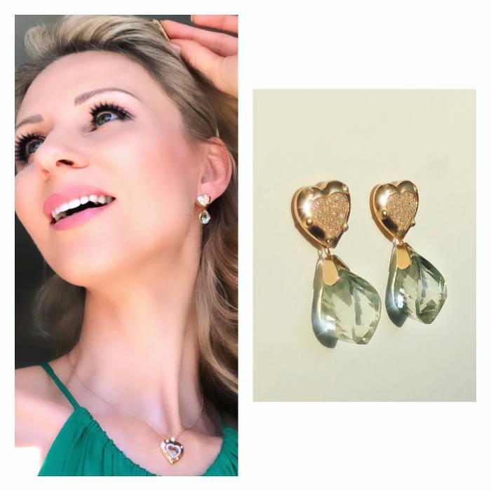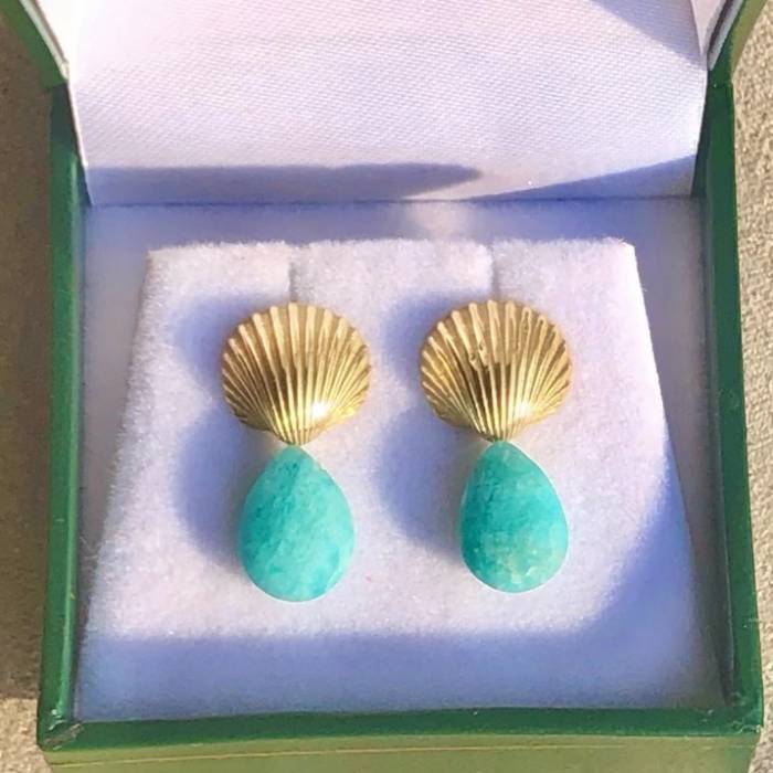 Earrings made in precious yellow gold 18k and natural Amazonite detachable drops