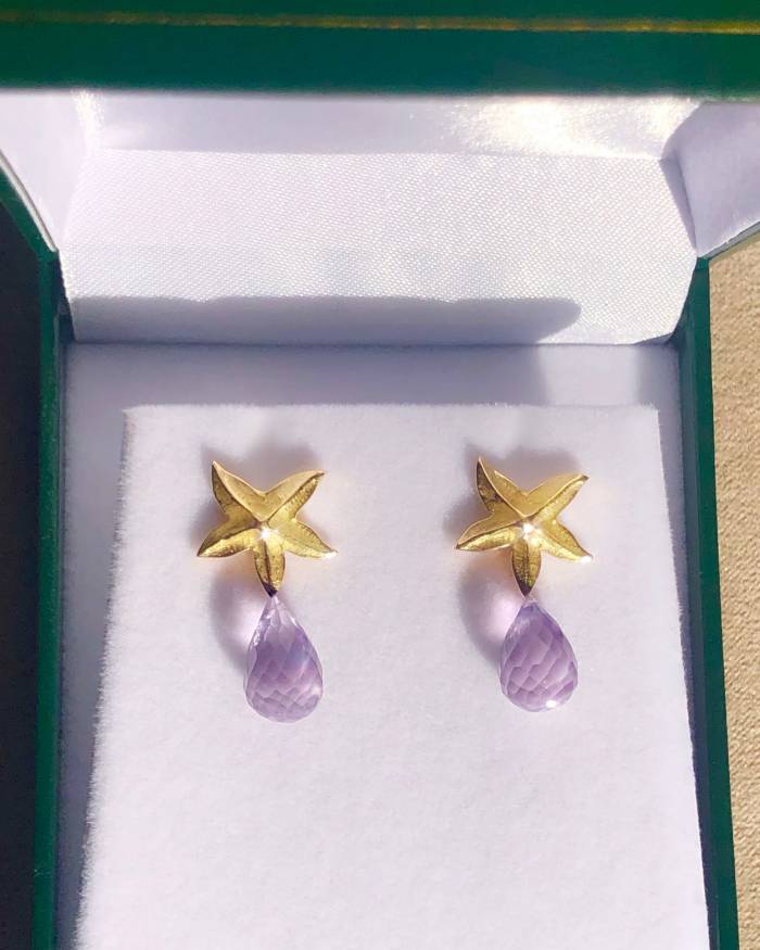 Earrings in yellow gold 18k and detachable hand carved Lavender Amethyst