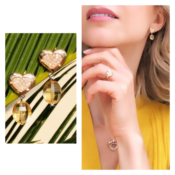 Earrings in precious yellow gold 18k and detachable hand carved pendants of natural Citrine gemstone