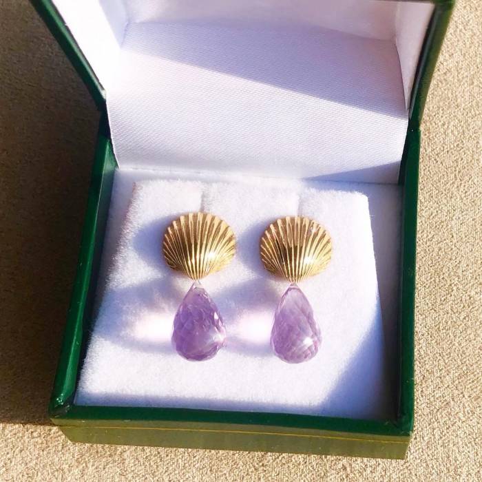 Dieva Azure Seashell earrings with Lavender Amethyst